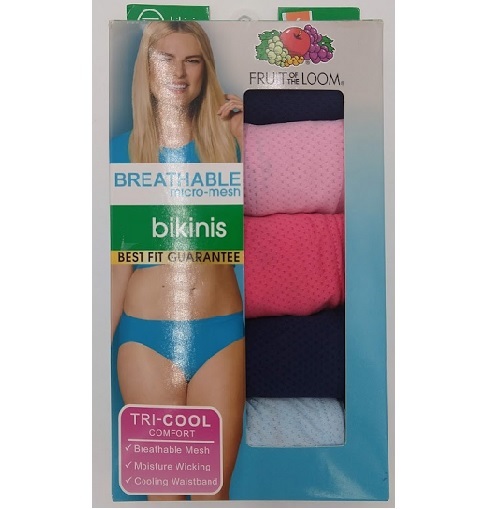 Los bikinis de micromalla transpirables de Fruit of the Loom® son justo lo que necesitas para ayudarte a mantenerte fresca durante todo el día. Estas bragas cuentan con la tecnología Tri-Cool, que le brinda varios beneficios que incluyen tela de malla transpirable, absorción de la humedad y una cintura refrescante. Como siempre, nuestras bragas no tienen etiquetas y están hechas con un forro de 100 % algodón para mayor suavidad. ¡Abastécete de estos artículos imprescindibles de Fruit of the Loom® en nuestro conveniente paquete de 5!