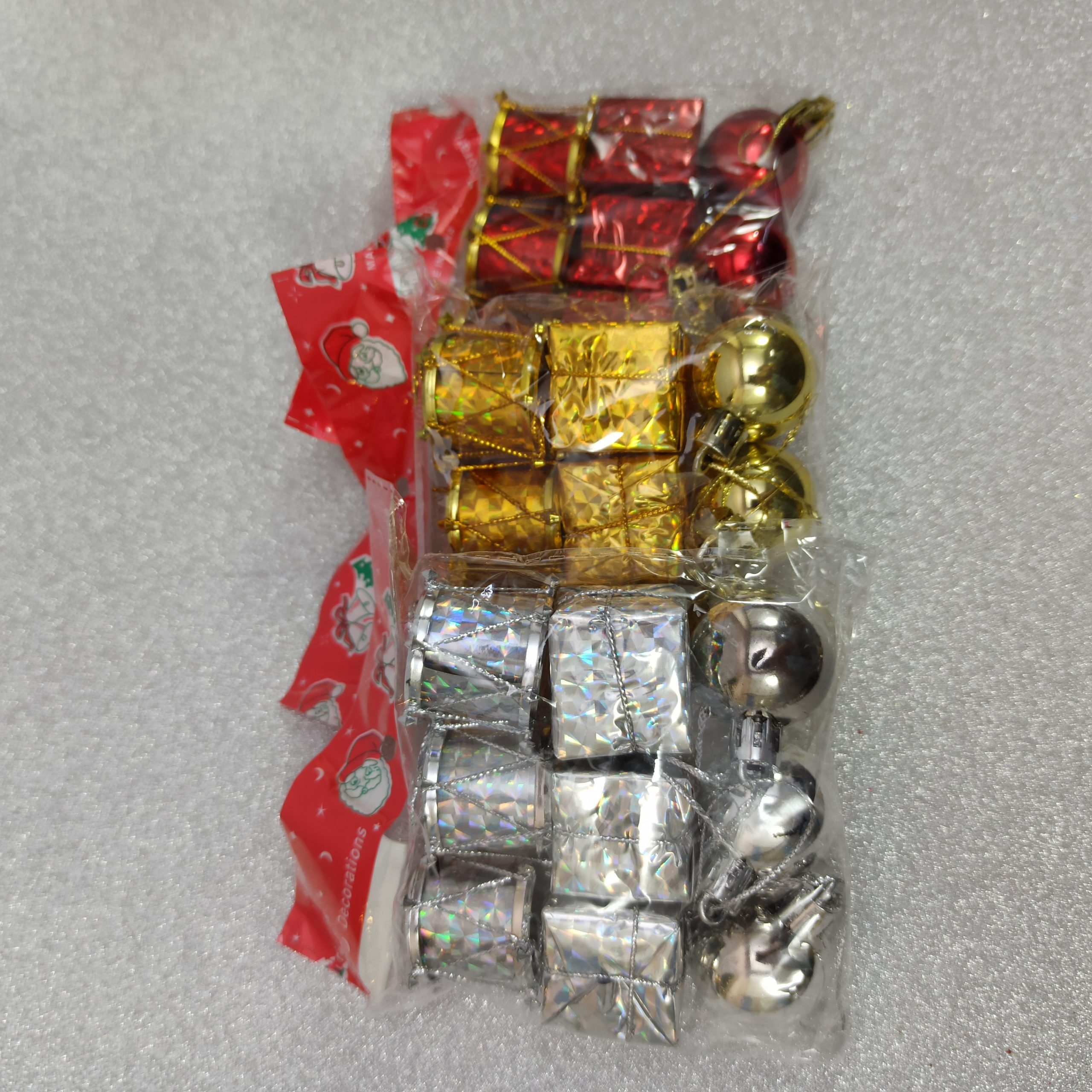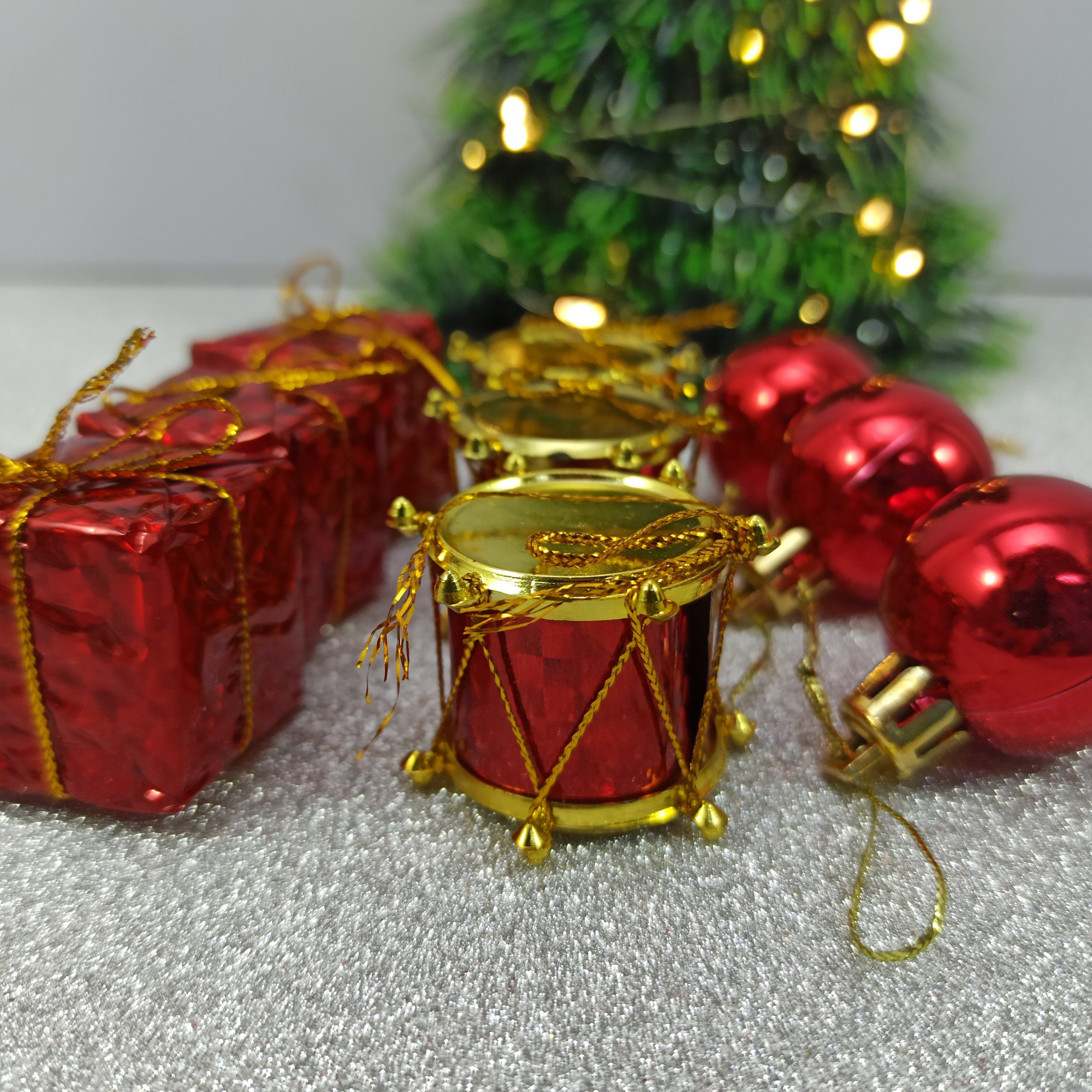 Incluye 3 tamborcitos, 3 bolitas y 3 regalitos de 3 cm aprox 🎅