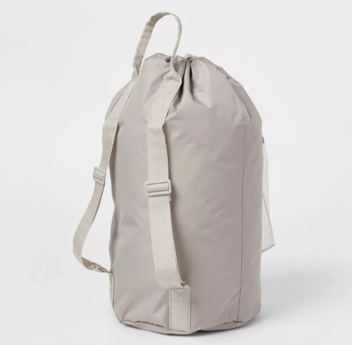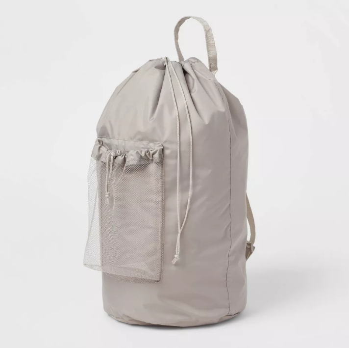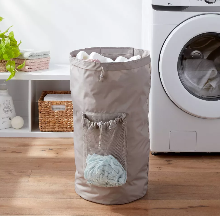 Recoge tu ropa y llévala cómodamente de una habitación a otra con esta bolsa de lavandería tipo mochila de Brightroom™. Diseñada con forma cilíndrica para un look similar al de una mochila de viaje, esta mochila gris luce una construcción texturizada que le da un toque visual atractivo. El bolsillo lateral de malla te ayuda a separar las prendas pequeñas de las de colores, mientras que el cordón superior mantiene la ropa organizada. Además, con el asa superior y las correas ajustables, esta bolsa de lavandería será fácil de llevar, ya sea que vayas a la lavandería o a la autoservicio.
