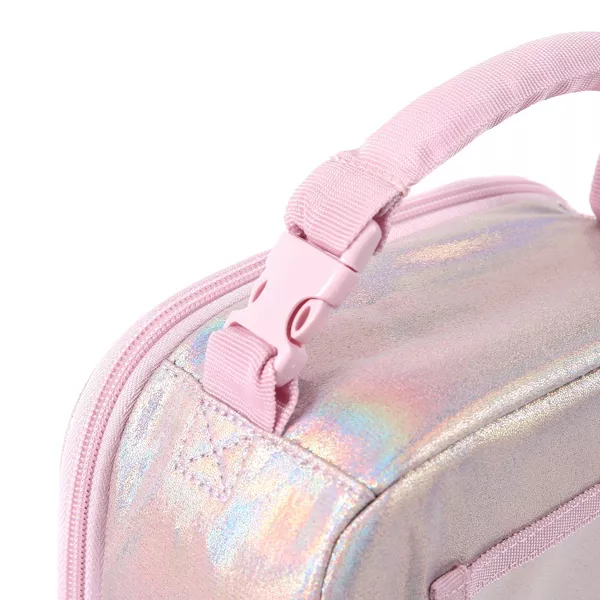 El aislamiento térmico de alta densidad mantiene sus alimentos y bebidas fríos por más tiempo y el revestimiento Ultra Safe de fácil limpieza tiene Microban para proteger contra los olores y las manchas bacterianas. El exterior de la lonchera cuenta con un bolsillo con cierre, asa acolchada y bolsillo lateral de malla que puede adaptarse a una botella de tamaño estándar de hasta 12 oz. El asa incluye un clip giratorio que se adhiere a las mochilas u otras bolsas para llevarlas con las manos libres.