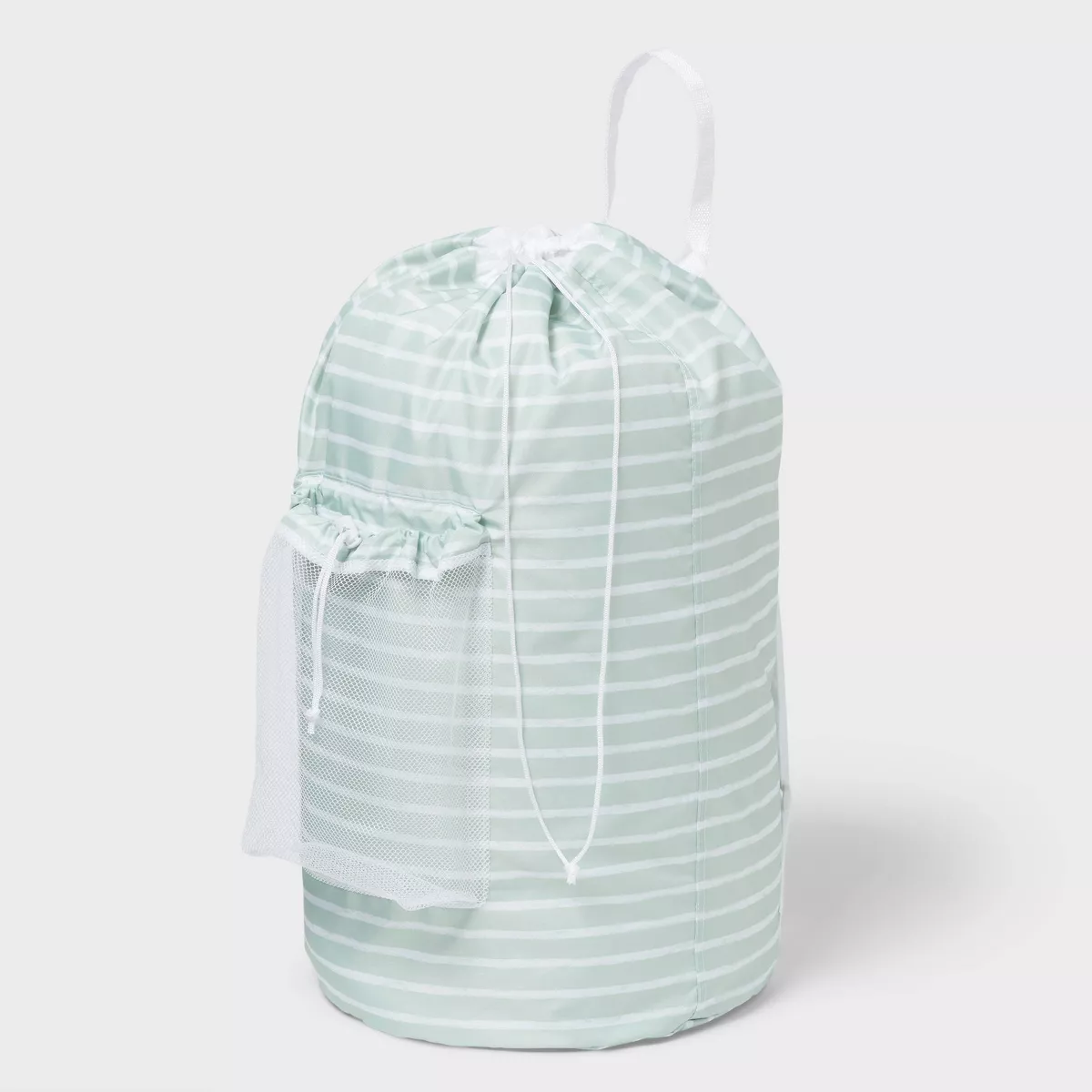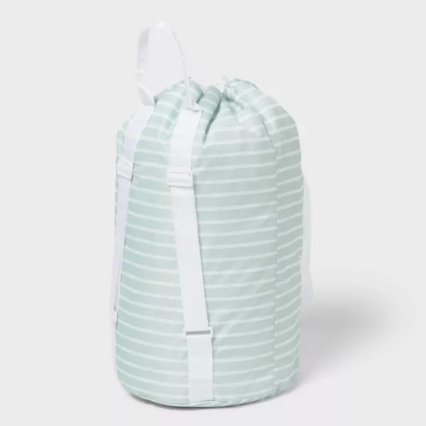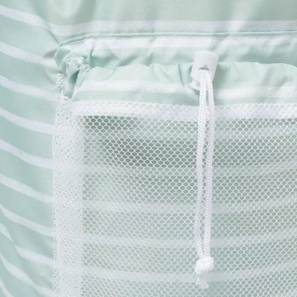 Esta bolsa de lavandería tipo mochila de Brightroom™ ofrece una forma elegante e inteligente de llevar y guardar tu ropa. Adornada con clásicas rayas blancas sobre un fondo verde menta, esta bolsa tiene la clásica silueta de una mochila. Cuenta con un espacioso compartimento principal con cierre de cordón y un bolsillo frontal de malla blanca con cierre de palanca y cordón. Gracias al asa superior y las correas de hombro ajustables, transportar tu ropa será más fácil que nunca.