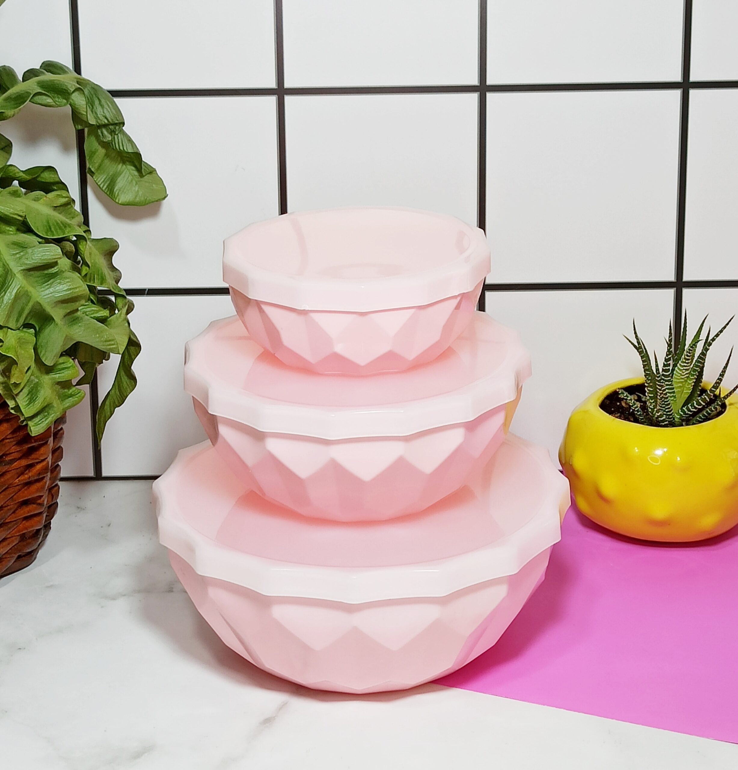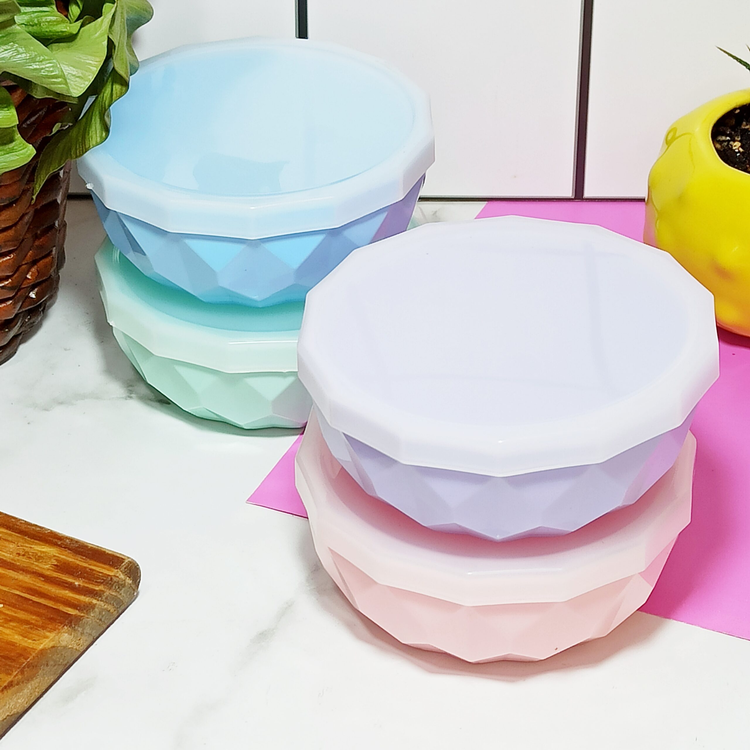Bowl facetado Mediano, viene en 4 colores aqua,rosa,lila y celeste