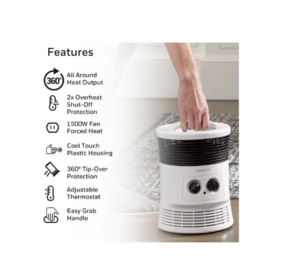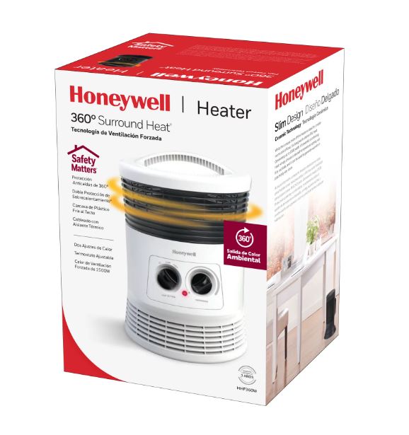 Diseñado para brindar calidez general, este calentador portátil de 360 grados es perfecto para habitaciones pequeñas y medianas y ofrece calefacción en todo el ambiente. Además, con un calefactor Honeywell, puede ahorrar hasta $276* en costos de calefacción este año. Al bajar unos pocos grados el termostato de toda la casa y calentar solo la habitación en la que se encuentra, un calentador de aire de Honeywell puede ayudarlo a ahorrar dinero y brindarle un calor relajante. Esa es la tranquilidad de Honeywell Heater.