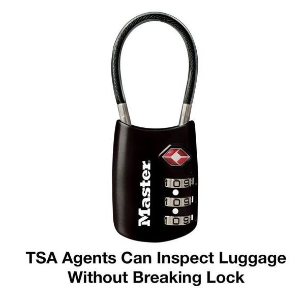 El candado para equipaje Master Lock n.º 4688D configura tu propia combinación aceptado por la TSA cuenta con un cuerpo metálico de 1-3/16 pulgadas (30 mm) de ancho para mayor durabilidad. El grillete de 3 mm (1/8 pulg.) de diámetro tiene 38 mm (1-1/2 pulg.) de largo y está hecho de acero trenzado flexible cubierto de vinilo, lo que ofrece resistencia al abuso del equipo de manejo de equipaje. Los inspectores de la Administración de Seguridad en el Transporte (TSA) pueden abrir, inspeccionar y volver a cerrar bolsas cerradas con un candado aceptado por la TSA. ¡Cierre su equipaje facturado con el candado que los inspectores de la TSA no cortarán!