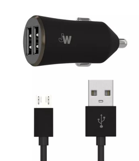 El cargador de coche Just Wireless de doble puerto USB con salida de 2.4A y un cable Micro USB de 6 pies de largo incluido cargará su teléfono inteligente o tableta directamente desde el puerto de alimentación de 12V de su vehículo. Su diseño pequeño y compacto lo convierte en un accesorio perfecto para usar en todo tipo de puertos de alimentación de vehículos y encendedores de cigarrillos, lo que brinda la solución de carga de automóvil más rápida disponible para sus dispositivos mientras conduce. Las pruebas estrictas garantizan una protección completa para usted y sus dispositivos mientras se usa la protección de circuito integrado y el máximo refuerzo para garantizar que el cableado interno esté protegido y que sus dispositivos se carguen y sincronicen de manera rápida y segura. Se ha demostrado que el cable dura más que la mayoría de los cables.