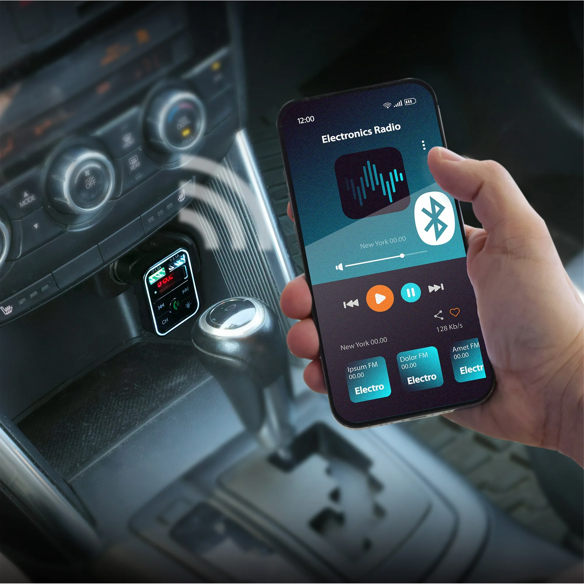 Transmita su música con tecnología inalámbrica Bluetooth o haga esa importante llamada de conferencia de forma remota, ¡haga lo que haga, simplemente mantenga las manos en diez y dos! Hemos diseñado nuestro transmisor inalámbrico con dos puertos USB y USB-C para satisfacer sus necesidades de carga y hemos instalado controles manuales, porque ¿qué es un dispositivo manos libres donde aún tiene que sostener su teléfono para responder llamadas o cambiar a la siguiente canción? Y con luces LED que cambian de color, ¡qué más se puede pedir! Conduzca Onn.