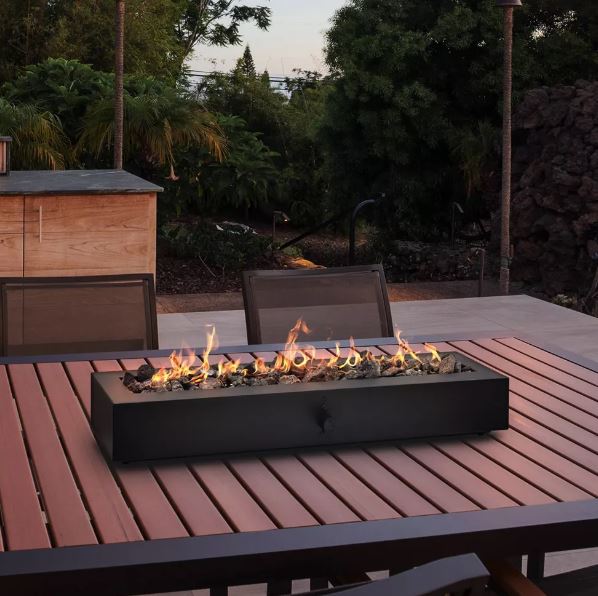 Mantente cómodo mientras entretienes o te relajas con esta chimenea de mesa para exteriores de Project 62™. Fabricada con acero resistente al calor para mayor seguridad y durabilidad, esta chimenea de mesa negra presenta una forma rectangular simple con un acabado negro mate para combinar fácilmente con cualquier estética exterior. Completo con una llama ajustable y rocas de lava, puede disfrutar del ambiente de un fuego clásico sin el desorden de la madera real y las cenizas. Coloque esta chimenea de mesa de llama ajustable en la mesa de comedor de su patio para crear el ambiente perfecto para una velada con amigos y familiares.
