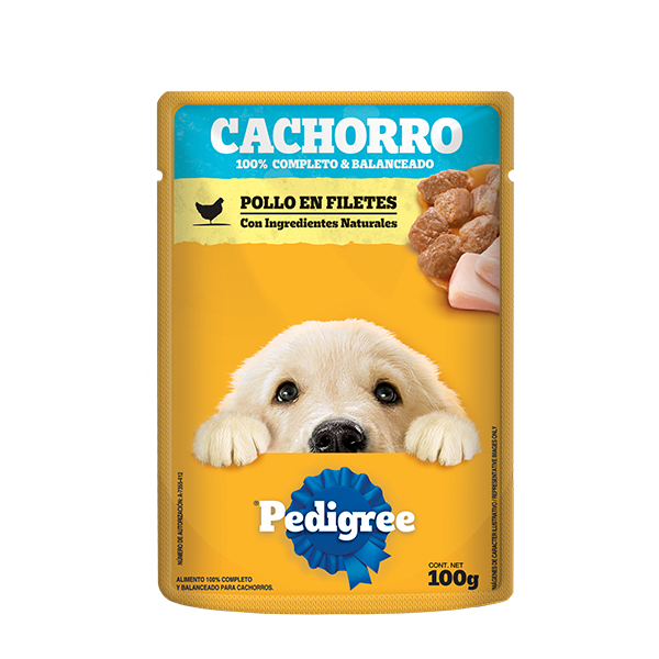 Todos quieren probar el increíble sabor de los Sobres de alimento húmedo Pedigree para cachorro sabor pollo. Deliciosos y nutritivos trocitos de pollo que proporcionan una alimentación tan completa y balanceada como nuestro alimento seco que ya conoces. Puedes servirlos solos o combinados con alimento seco.