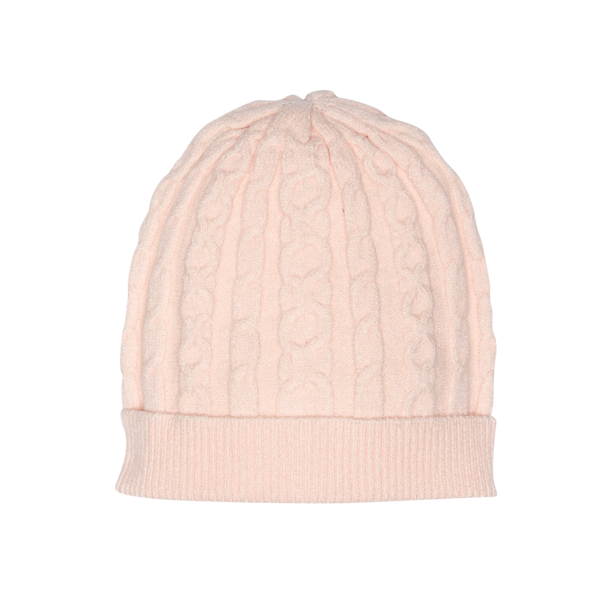 Sólido rosa con suéter de cable gorro de punto y suéter