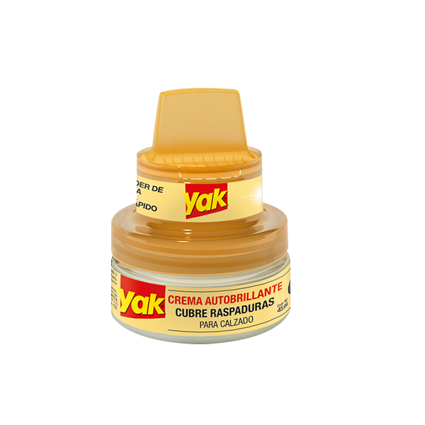 La fórmula cremosa de Yak a base de ceras auto brillantes cubre, protege y reaviva los colores de tu calzado