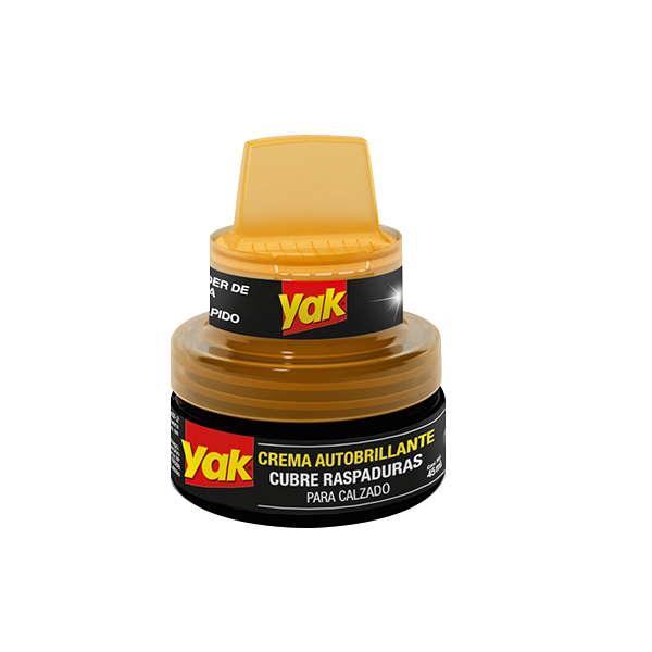 La fórmula cremosa de Yak a base de ceras auto brillantes cubre, protege y reaviva los colores de tu calzado