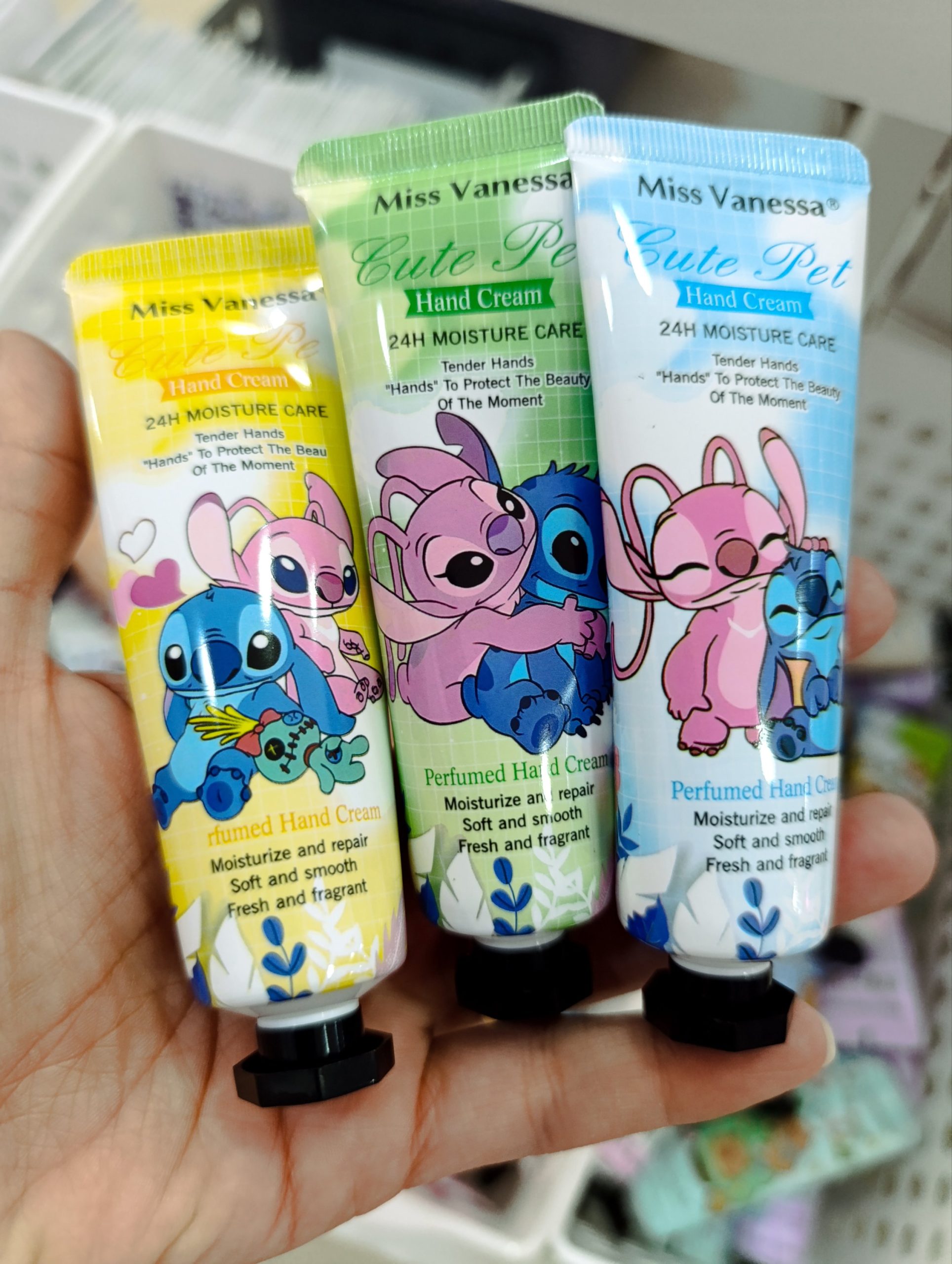 Crema de manos Stitch con diseño divertido y colorido.