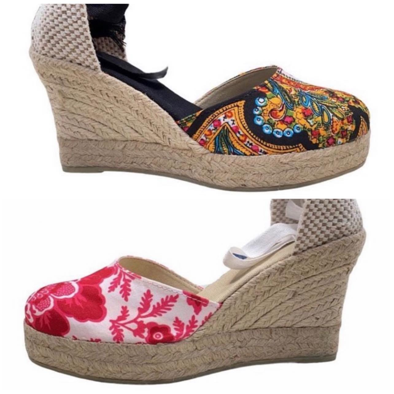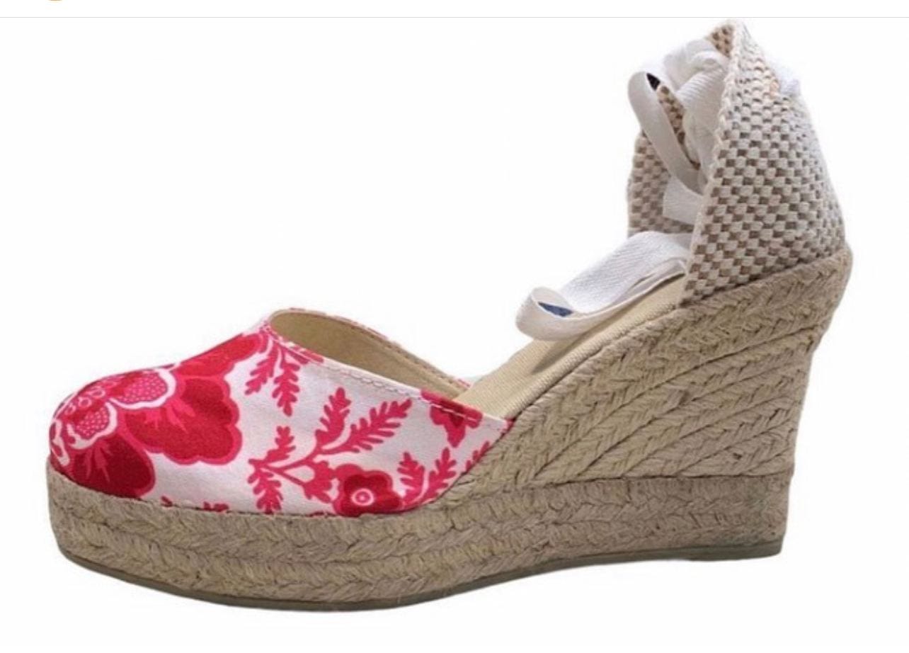 Cuña Plataforma Sandía inspirada en la Tradicional de Yute realizada cosida y montada a mano