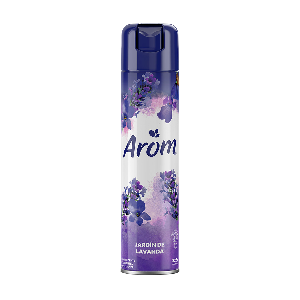 Arom desodorante ambiental en aerosol elimina olores desagradables y renueva el aire a través de finas y suaves esencias, que perfuman y desodorizan dejando una agradable y fresca sensación en el ambiente. Fórmula a base de agua. Aromas duraderos con fragancia residual.