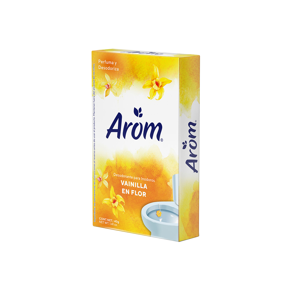 Desodorante en forma de flor para taza de baño, que perfuma y desodoriza el inodoro, dejando una agradable y fresca sensación a Vainilla en el ambiente.
