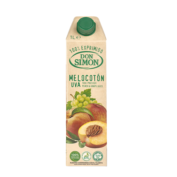 100% zumo de Melocotón y Uva exprimido, no procede de concentrado. Sin conservantes. Sin Gluten. Puede consumirse en temperatura ambiente. Vida útil de 12 meses. Envase Tetrapak Ecológico