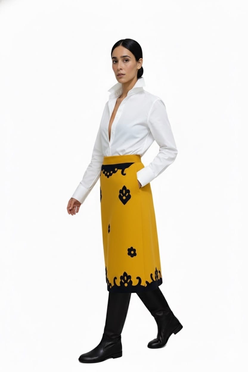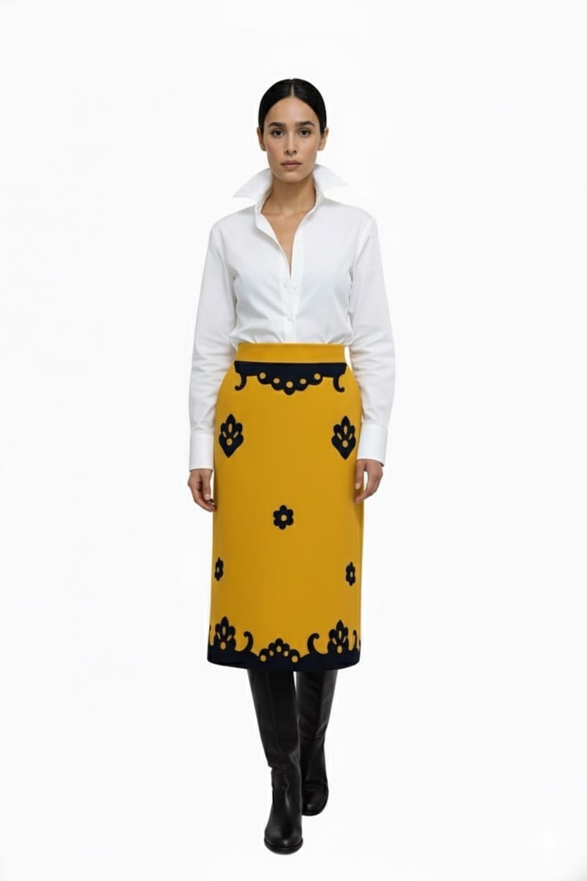 Falda Conquistadora con Picados en color Mostaza y Negro