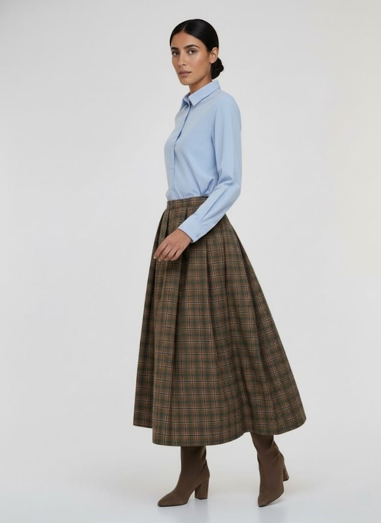 La falda de tipo escocés. Es un ejemplo perfecto. De esta adaptabilidad. No es el kilt masculino. Es una prenda femenina. Inspirada en el original. Con pliegues. Con cuadros. Con carácter.