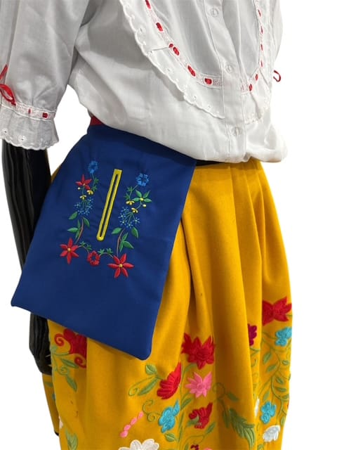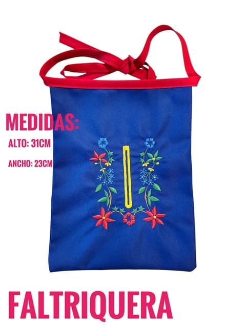 La Faltriquera 01 está realizada en Sarga de Color Azul y Bordada en Colores