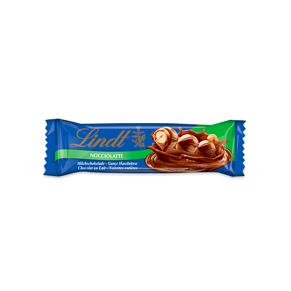 La barra de chocolate con leche Lindt Nocciolatte está compuesta por una avellana entera, recubierta de un suave relleno de chocolate con leche y avellanas, recubierta de nuestro delicioso chocolate con leche.