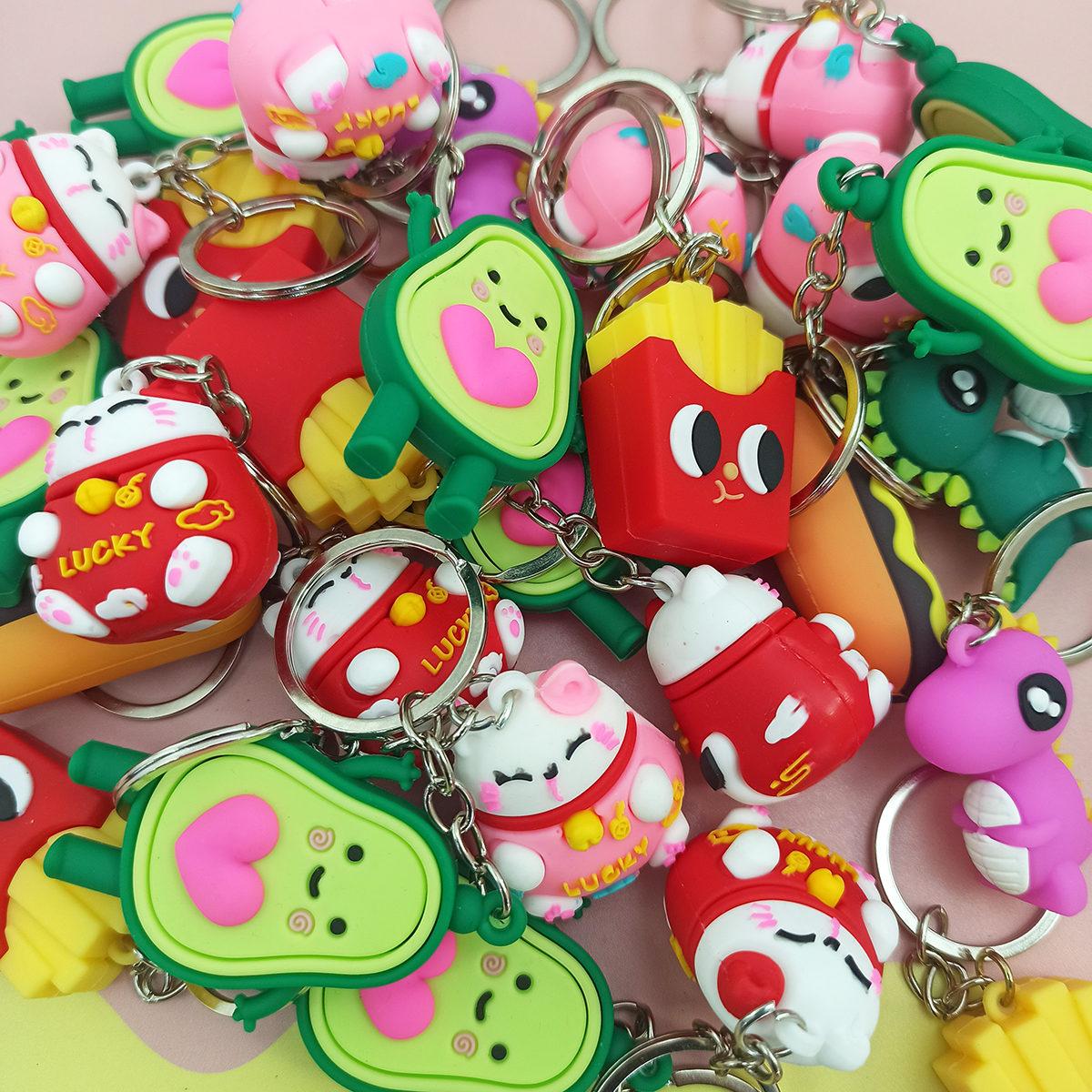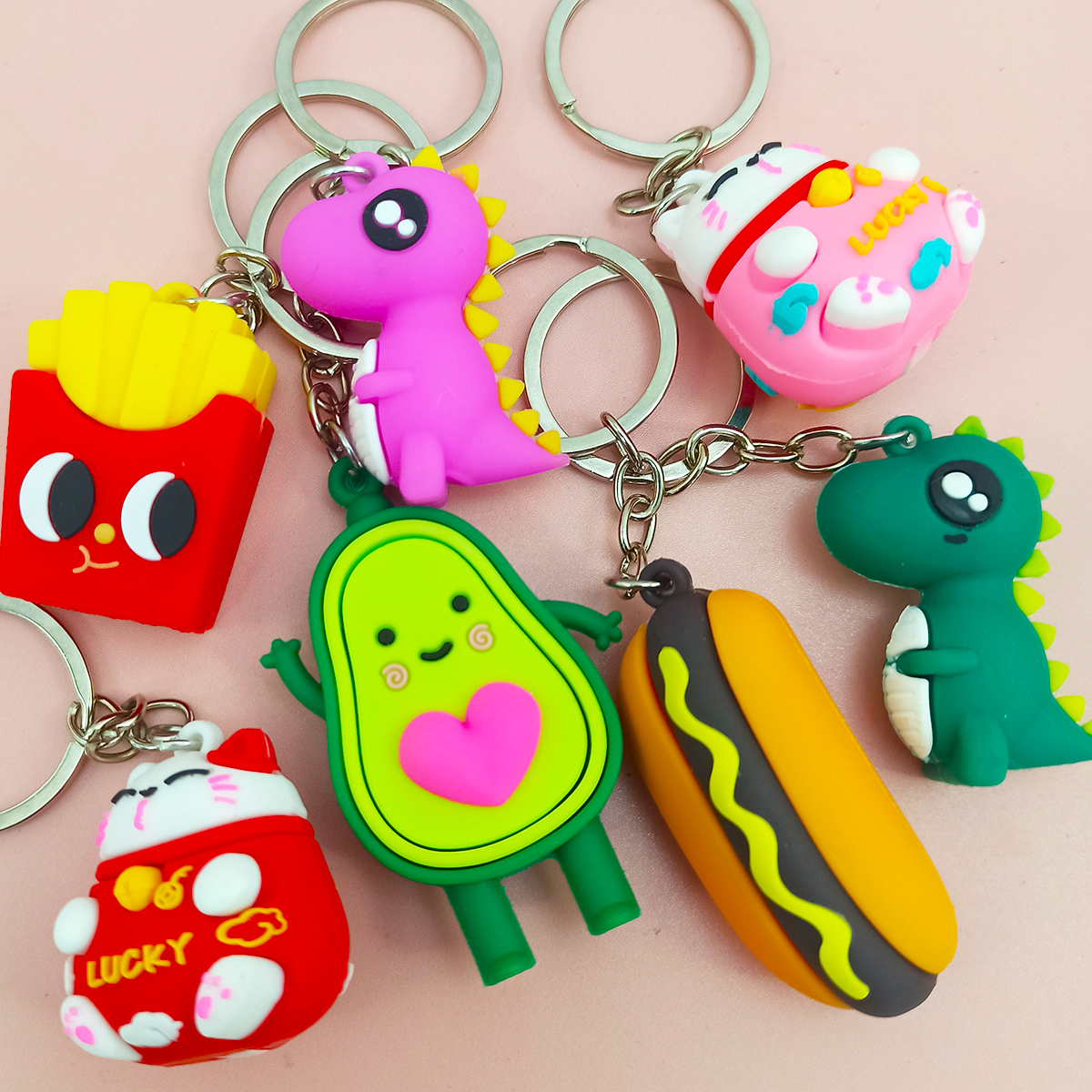 Llaveros con la mejor onda , vienen , panchos , gatitos chinos, papas fritas , paltas y dinos, se envian surtdios
