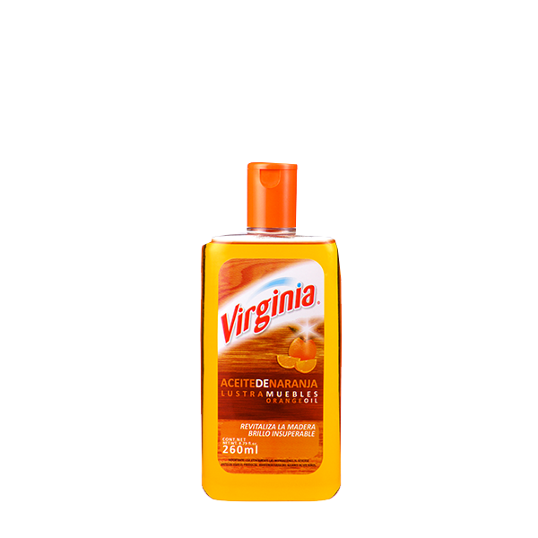 Lustra muebles Aceite de Naranja Virginia posee una exclusiva fórmula con aceite esencial de naranja, el cual revitaliza instantáneamente las superficies de madera del hogar, otorgándole un brillo insuperable. Ideal para superficies de madera sin lacar, rústica.