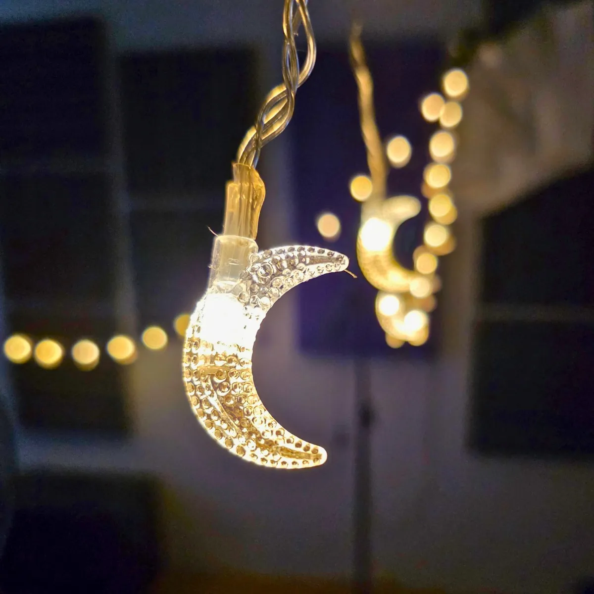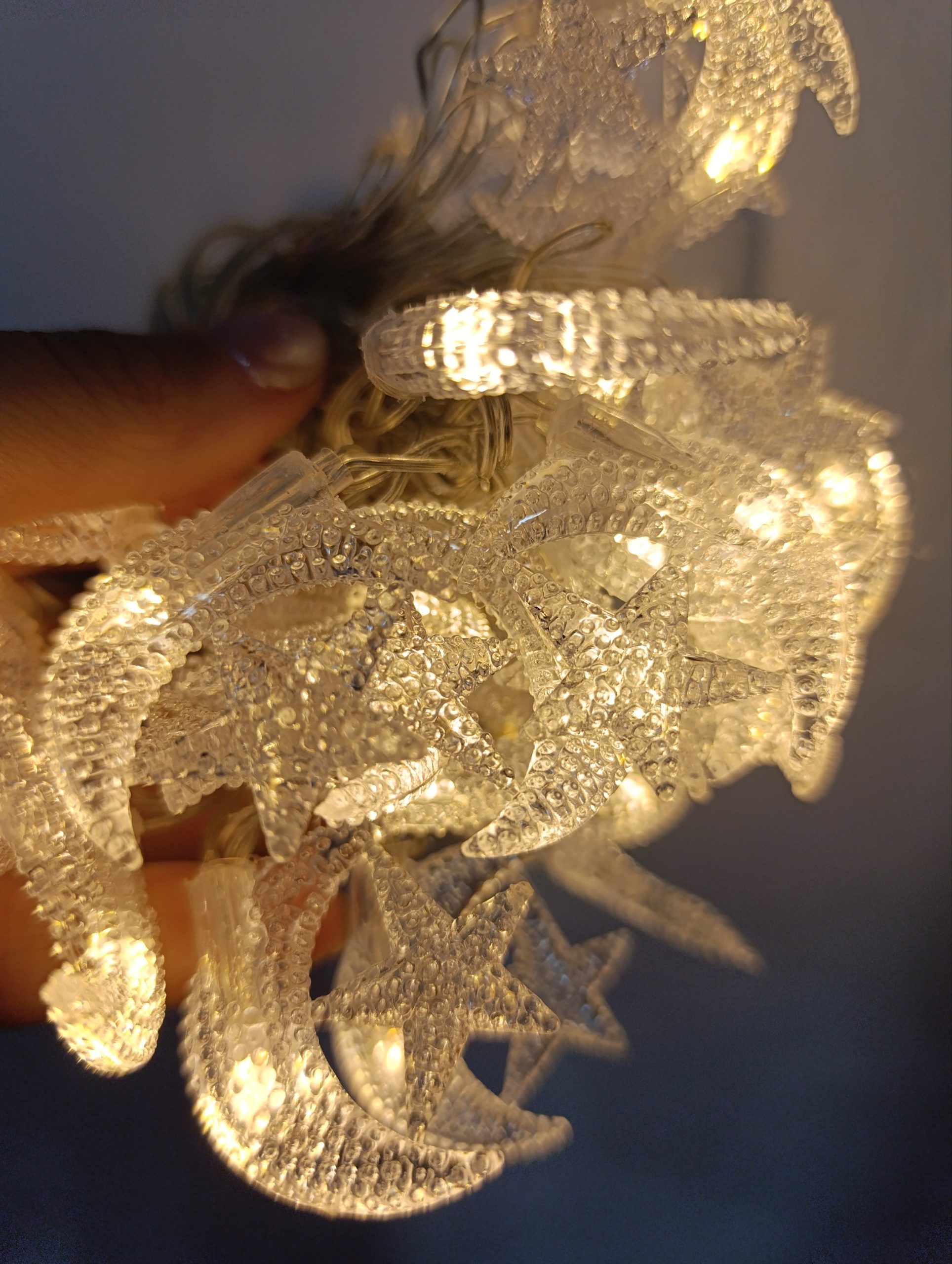 Guirnalda de 28 figuras combinadas de luna y estrellas, con luz cálida o blanca según variante. Ideal para decorar ventanas, paredes, cuartos o rincones especiales. Brillo parejo, bajo consumo y un diseño encantador que aporta un toque mágico y festivo ✨🌙⭐💡
