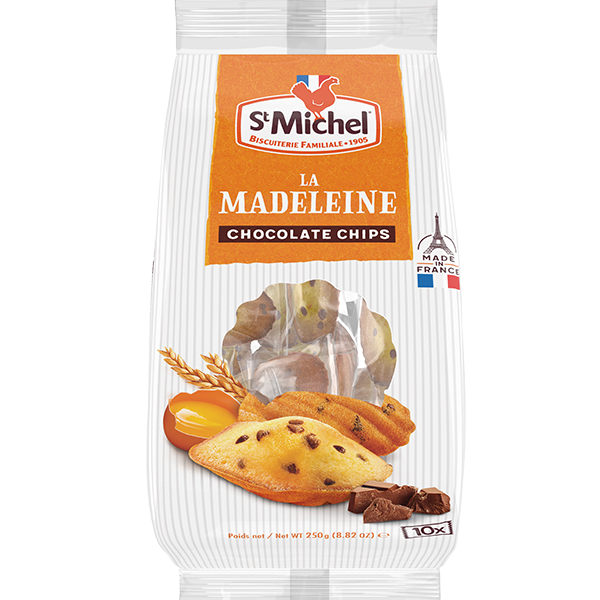 Las magdalenas de ST. MICHEL son de textura esponjosa, tiene pedazos de chocolate para un toque goloso suplementario.