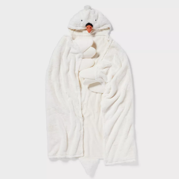 Tu hijo lucirá lindo y cómodo con la manta con capucha Swan de Pillowfort™. Esta manta blanca tiene una capucha con forma de cara de cisne con pico y cola para divertirse. Confeccionada con una suave tela de piel sintética, esta lujosa manta con capucha se sentirá súper suave cuando la envuelvan alrededor de su cuerpo y quedará genial exhibida en su cama.