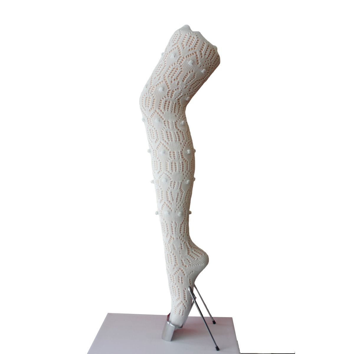 Medias tipo panty (forma leotardos) de espuma caladas para traje regional.