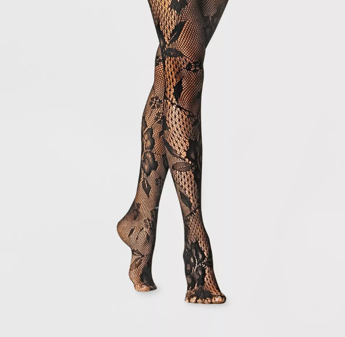 Medias de mujer con estampado floral de red mixta Talla M/L, Negro – A New Day™