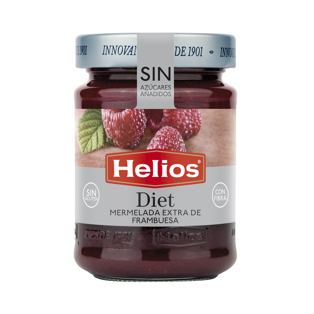 La frambuesa es una fruta que aporta una cantidad destacable de fibra que mejora el tránsito intestinal. También constituye una buena fuente de vitamina C, ácido cítrico y ácido elágico, minerales como el potasio, el magnesio y el calcio. La mermelada Diet de frambuesa que Helios elabora no tiene azúcar, ni colorantes, ni conservadores, ni gluten. Apta para diabéticos.