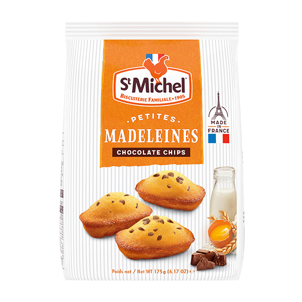 Las mini magdalenas de ST. MICHEL son de textura esponjosa, tiene pedazos de chocolate para un toque goloso suplementario.