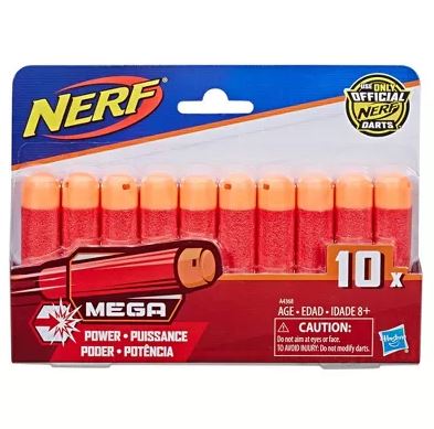 ¡Abastécete para la batalla con este paquete de recarga de 10 dardos NERF MEGA! Lleva un poder masivo al campo de batalla. Los dardos NERF MEGA chirrían en el aire cuando se disparan. Compatible con lanzadores NERF MEGA. No te quedes sin dardos para ese combate entre amigos.