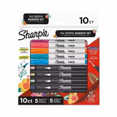 El juego de marcadores Sharpie incluye los marcadores Sharpie Creative y Sharpie S-Note.