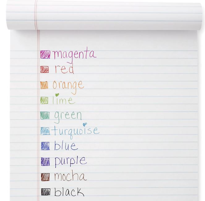 - Incluye 18 bolígrafos en colores surtidos.