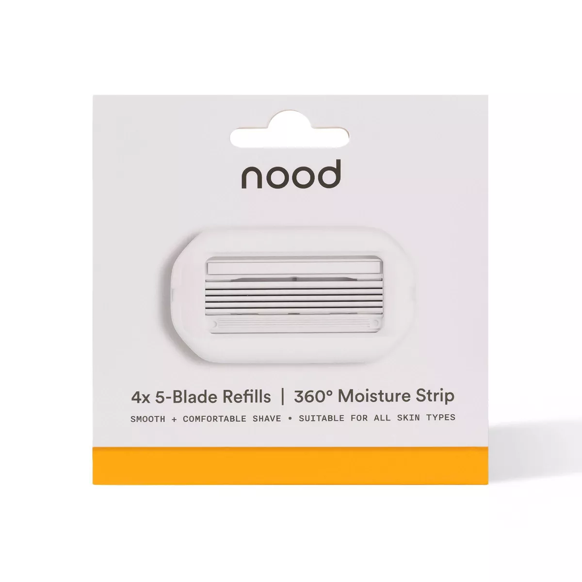 Diseñadas para un afeitado apurado y cómodo, las cuchillas The Blades de Nood cuentan con tecnología de 5 hojas fabricadas con acero inoxidable de primera calidad y rodeadas por una banda humectante de 360° y un protector de goma para la piel que garantiza un deslizamiento óptimo y protege contra cortes. Una mezcla nutritiva de aceite de almendras, manteca de karité, manteca de cacao, leche de coco y aloe vera restaura la hidratación esencial de la piel, a la vez que calma y previene la irritación. Combínalas con The Razor, The Shave Lube y The Nood Serum para una rutina de afeitado definitiva.
