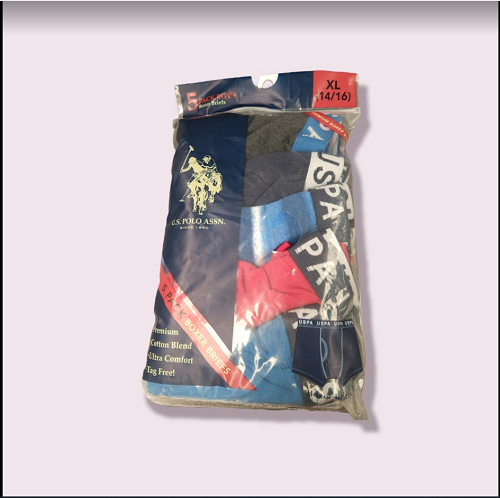 Paquete de 5 boxers de pierna corta para niño talla XL marca U.S. Polo Assn