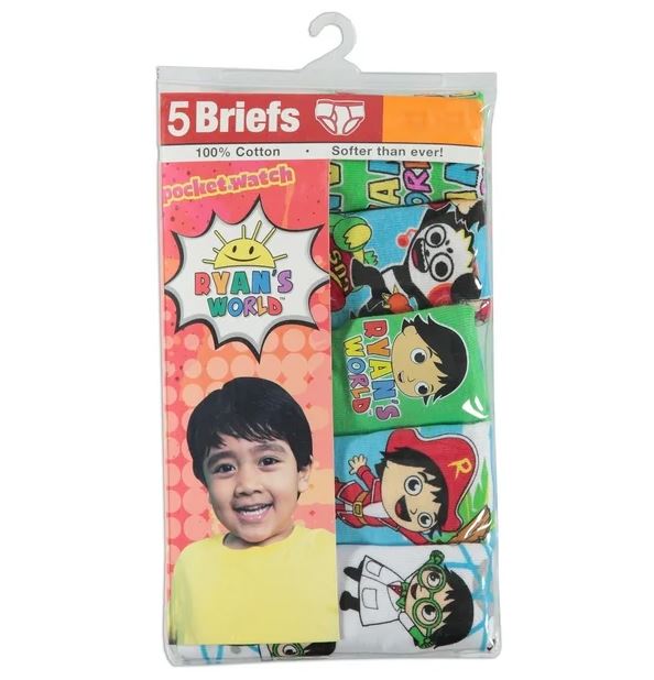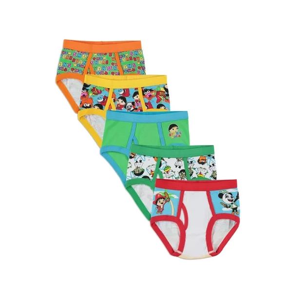 Paquete de 5 calzoncillos Ryan’s World para niño hechos de algodón peinado con cinturilla elástica para mayor comodidad. Sin etiquetas para mayor comodidad.