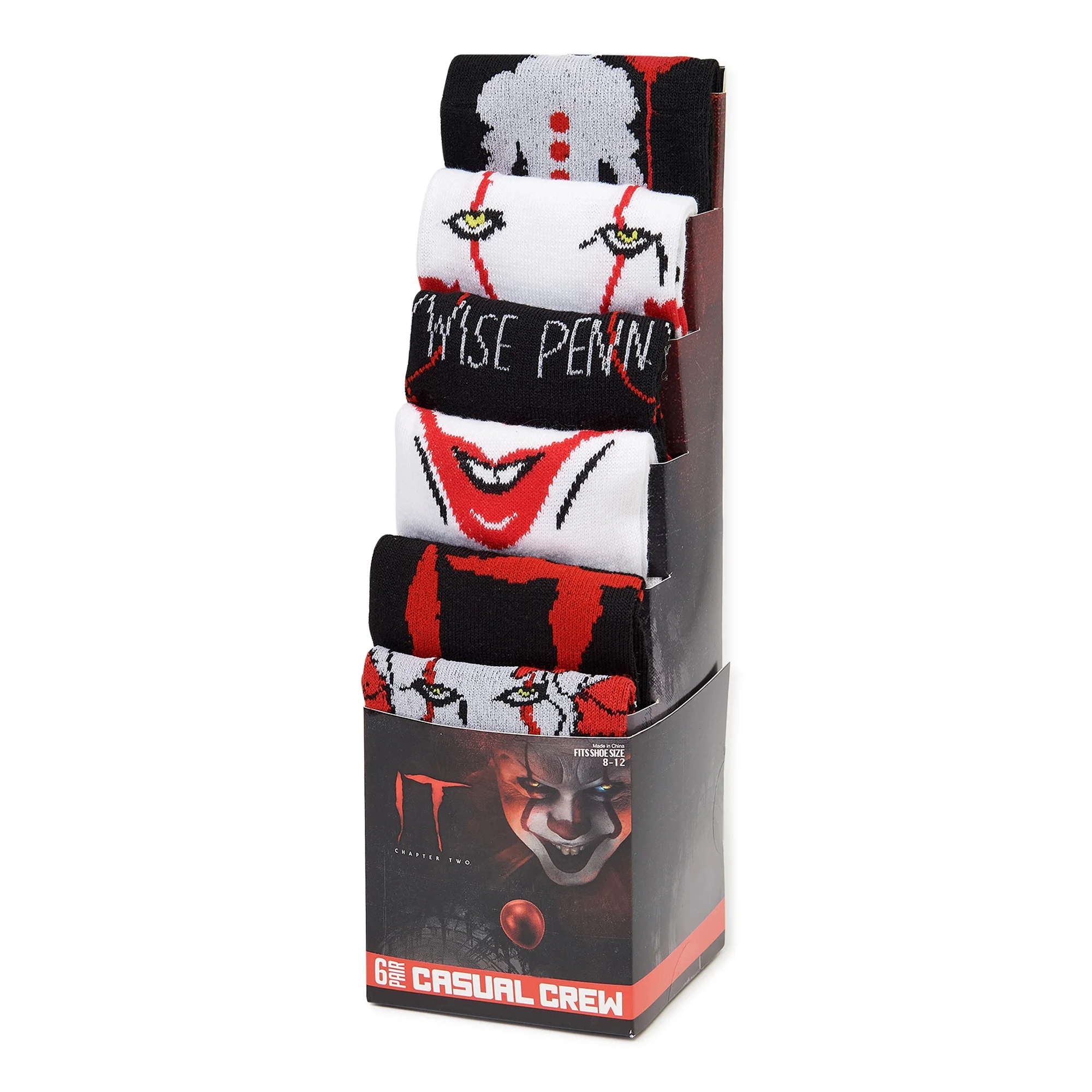 Espeluznante fresco y terriblemente divertido, mostrar su amor por el clásico de Stephen King con un paquete de seis calcetines con estampados coloridos de TI. Ligeros con un diseño de punto plano, estos calcetines para hombre son una buena adición a tu colección de cultura pop y también son un gran regalo para el fanático de Stephen King en tu vida.