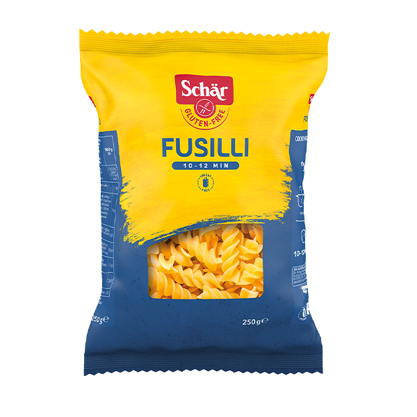 Los Fusilli schär sin gluten tienen una forma de espiral tradicional que se unen perfectamente con la salsa consiguiendo una explosión de sabor en cada bocado.