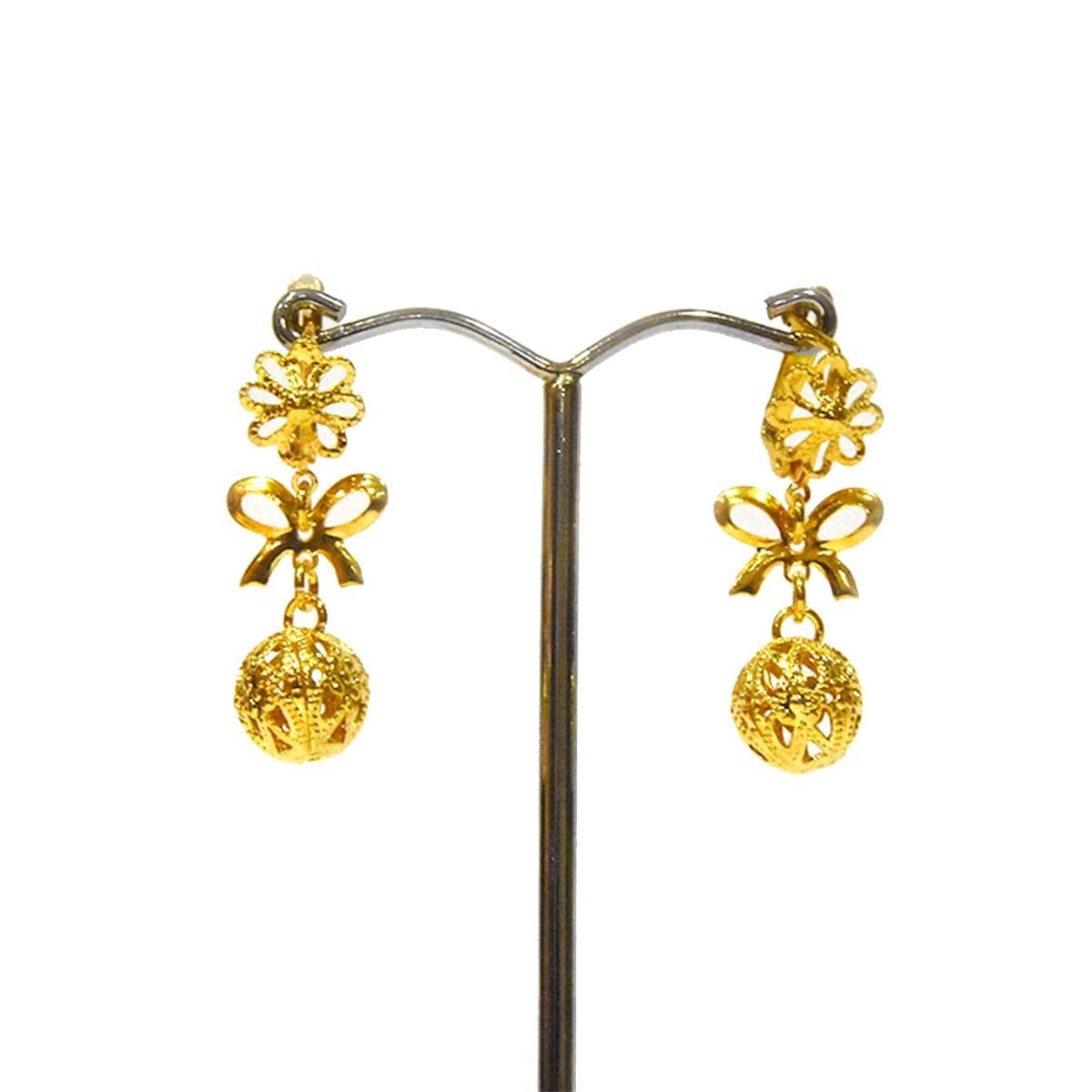 Pendientes de lazo y bola de filigrana dorada.