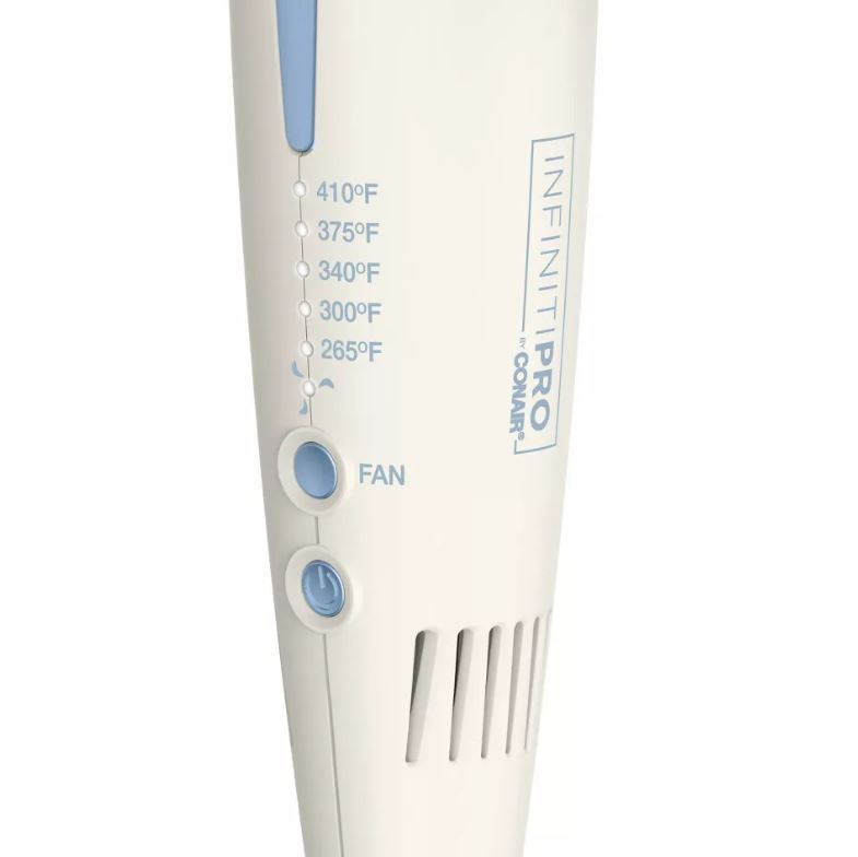 Alisa el cabello con calor ultra alto y luego fija tu look con aire fresco de la plancha alisadora InfinitiPRO by Conair® QuadAir. Este innovador moldeador alisa con cuatro placas de ½ pulgada y un calor alto y uniforme que alcanza los 410 °F en 30 segundos. El cabello se desliza sin esfuerzo entre las placas recubiertas de cerámica de titanio, dejándolo suave y brillante con estilos que duran más. Los ajustes de calor variables están personalizados para alisar todo tipo de cabello, y un exclusivo sistema de aire frío hace fluir aire frío a través del cilindro de titanio ventilado para lograr looks duraderos. El sistema enfría instantáneamente el cabello para fijar su estilo y protegerlo contra el daño por calor. Con un calentamiento rápido de 30 segundos, podrás empezar a peinar el cabello inmediatamente. Elija entre 5 configuraciones de temperatura (265 °F, 300 °F, 340 °F, 375 °F o 410 °F) para crear un cabello liso y liso en una sola pasada. Agregar aire frío es opcional. Simplemente presione el botón FAN ON/OFF para peinar con o sin él. Y diseñe con la tranquilidad de saber que hay un apagado automático de seguridad. La plancha alisadora QuadAir facilita alisar y peinar todo tipo de cabello con resultados suaves y satinados de larga duración. ¡El calor rápido, alto y uniforme, las placas deslizantes y una ráfaga de aire fresco te dan el poder de peinar!