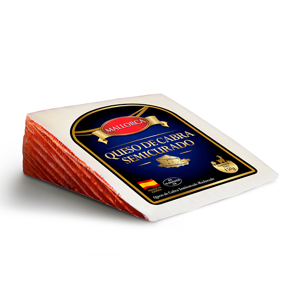 El queso de cabra semicurado Mallorca se elabora a base de leche pasteurizada 100% de cabra de la más alta calidad y de procedencia española. De color blanco marfil con un sabor suave, textura firme y cremosa. Ideal para consumirlo solo o acompañado de frutos secos o mermelada. Recomendamos atemperar el queso para que alcance una temperatura cercana a los 20 °C en la que su sabor y aroma se muestran en toda su intensidad. Prueba a maridarlo con un vino blanco seco y afrutado