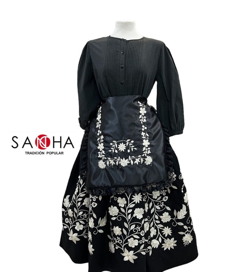 Las faldas castellanas suelen llevar bordados en negro sobre fondo blanco o beige.