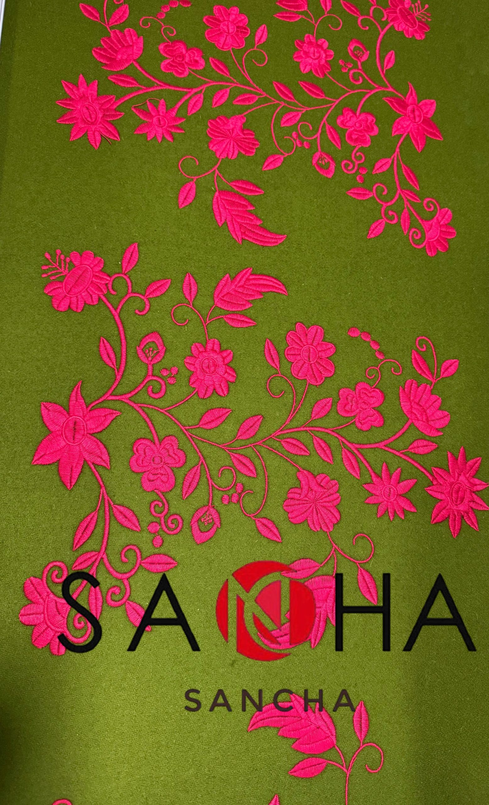 REFAJO PAÑO DE BÉJAR VERDE BORDADO EN COLOR ROSA FUCSIA