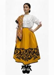 Las faldas castellanas suelen llevar bordados en negro sobre fondo blanco o beige.