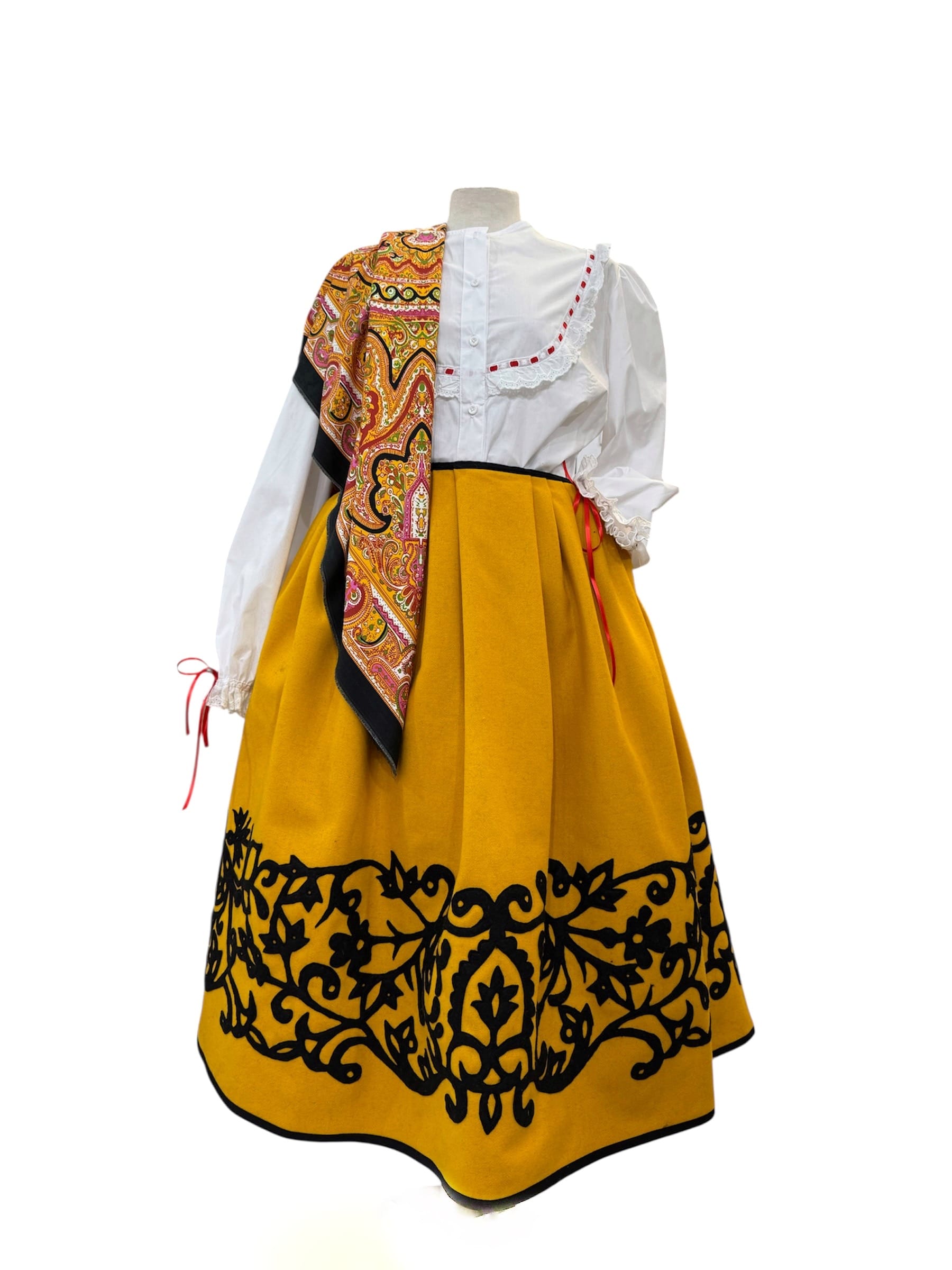En Aragón, la falda tradicional se llama sayas y suele ser de lana o algodón.