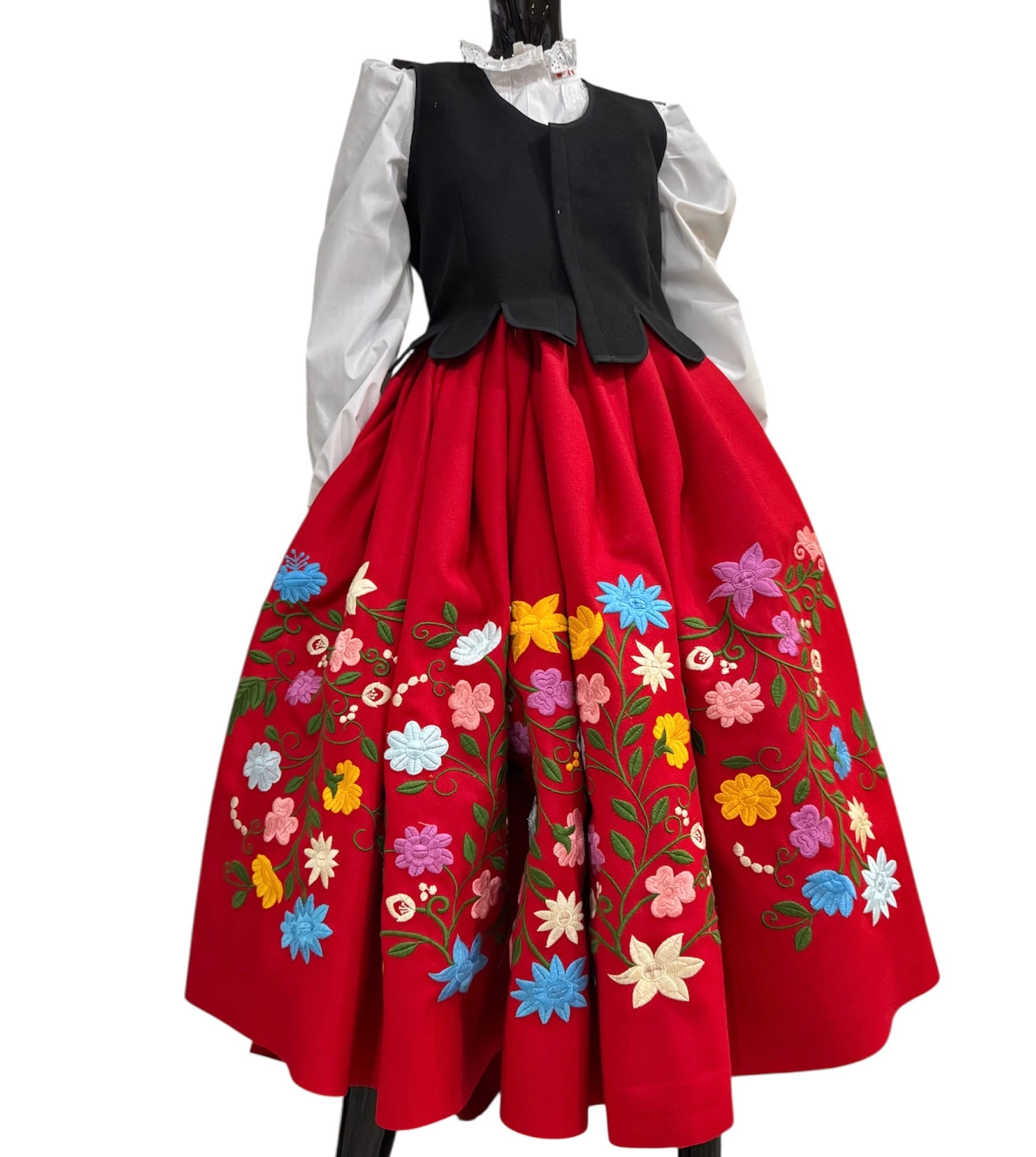 Los refajos o faldas en paño con bordados son muy variadas en todas las regiones y prendas que revalorizan los trajes.
