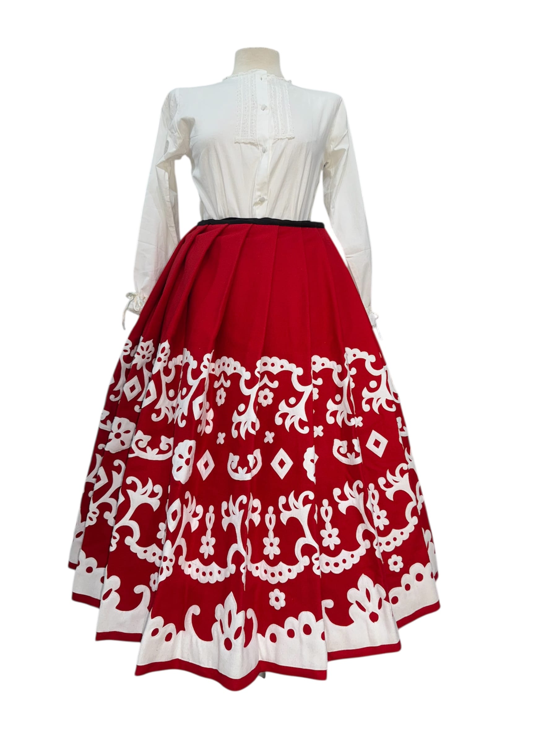 Las faldas castellanas suelen llevar bordados en negro sobre fondo blanco o beige.
